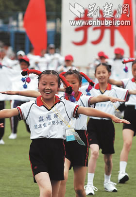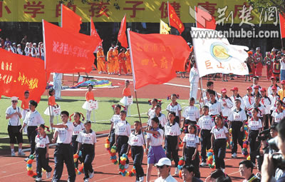 全國首屆希望小學運動會昨日在北京開幕,來自大別山下英山縣石頭嘴鎮(zhèn)希望小學的20名學生代表,向首都觀眾展現(xiàn)了湖北少年勤奮好學,勇于拼搏的形象。據(jù)了解,中國青少年發(fā)展基金會發(fā)起實施希望工程15年來,已資助250多萬名農(nóng)村貧困學子,援建希望小學萬余所。湖北日報記者 王威 攝