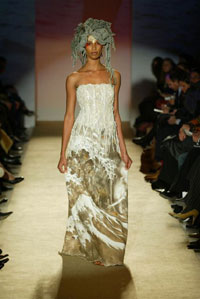 時尚的實驗---如它所被定義的那樣---以擁有無數(shù)的褒獎和特殊的證明為榮耀,并在世界范圍內擁有無數(shù)的追隨者。她設計的多樣性使將她帶到比利時首席設計師Micha Van Hoecke的服裝秀去設計高級女裝。她明了且有棱角的風格在她對顏色、材料和傳統(tǒng)的運用上無不發(fā)揮的淋漓盡致。Marella Ferrera的風格被描繪成既冷靜又線條明朗,通過對于一些原始材料的使用,像熔巖,玻璃,海芋,百合,無色水晶,刺繡雕刻,她常常創(chuàng)造出一些微型的藝術品.西西里亞、拉瓦、十勝石、陶瓦、無色水晶、銅、紙草以及紡織紙品,軟木和棕櫚樹根、皮革、緞帶、所有的蔬菜和動物的毛皮等等都會成為她穿著的重要的靈感來源。"...服裝必須是完美協(xié)調穿著者的東西,而不能讓人成為服裝的傀儡..."
