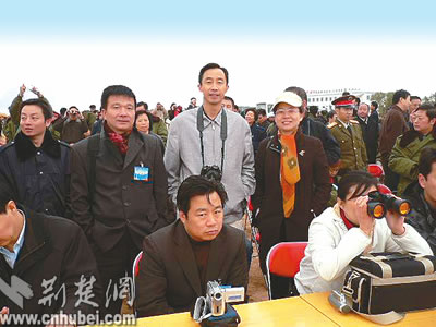 ●北京時間9時06分,神舟六號飛離酒泉衛(wèi)星發(fā)射中心觀禮臺人員視野。湖北日報記者張小燕連線發(fā)射現(xiàn)場———嘉魚縣委宣傳部部長葛婷
