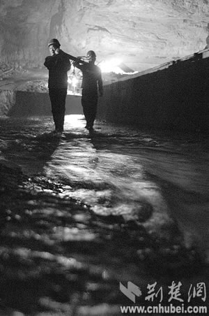 寂寞的蝙蝠第一次接待了人間來(lái)客,沉睡萬(wàn)年的巖溶洞穴第一次迎來(lái)了觀者。但黑暗陌生的世界還是讓堂堂男兒們感覺(jué)了一絲陰森恐怖。他們?cè)?tīng)當(dāng)?shù)匕傩諅髡f(shuō),洞里有巨蟒,所以至今沒(méi)人敢進(jìn)洞!白ゾo時(shí)間測(cè)量!”來(lái)不及恐懼,他們?yōu)樽约汗膭牛驗(yàn)檫@里隨時(shí)可能發(fā)生漲水、墜落等危險(xiǎn)?上,第一次經(jīng)驗(yàn)不足,手電筒的電池很快用完了,一行人只得互相攙扶著,摸索出溶洞。“后來(lái),我們又進(jìn)去了7次,終于測(cè)出了暗河的具體位置和流向。”方文武說(shuō)。