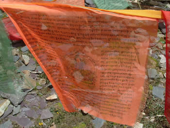 西藏有隨處可見的掛在山頂山口、江畔河邊道旁以及寺廟等各處被認(rèn)為有靈氣地方的五彩經(jīng)幡。之所以被稱作經(jīng)幡,是因為這些幡上面都印有佛經(jīng),在信奉藏傳佛教的人們看來,隨風(fēng)而舞的經(jīng)幡飄動一下,就是誦經(jīng)一次,在不停地向神傳達(dá)人的愿望,祈求神的庇佑。這樣,經(jīng)幡便成為連接神與人的紐帶。風(fēng)幡所在即意味著神靈所在,也意味著人們對神靈的祈求所在。風(fēng)幡寄托著人們美好的愿望。