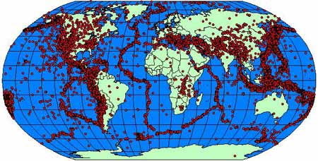 地震主要分布在環(huán)太平洋帶,阿爾比斯—喜馬拉雅帶,大西洋中脊和印度洋中脊上?偟膩碚f,地震主要發(fā)生在洋脊和裂谷、海溝、轉(zhuǎn)換斷層和大陸內(nèi)部的古古板塊邊緣等構(gòu)造活動帶。