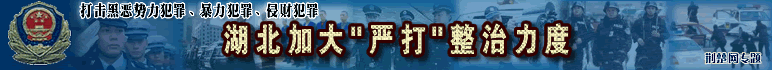 湖北今年嚴(yán)打目標(biāo)確定 省公安廳透露,去冬今春,我省社會治安大局穩(wěn)定,刑事發(fā)案率有所下降,今年將加大嚴(yán)打整治力度,重點打擊黑惡勢力犯罪、暴力犯罪、侵財犯罪……[詳細(xì)]::武漢警方突襲濱江明珠娛樂城 抓獲45名吸毒者 ::全省交警嚴(yán)查盜搶車 一假警車上查處9塊假車牌::湖北圈定106個治安整治重點 武漢市5個地段在列 武漢嚴(yán)打建筑工地惡勢力 [市政法委 各區(qū)舉報電話][把黑惡勢力趕出工地訪談熱線開通]::武漢市政法委副書記:廣泛發(fā)動群眾鏟除沙霸石霸::漢陽鏟除沙石惡霸團伙 行兇兩年作惡無數(shù)(圖)