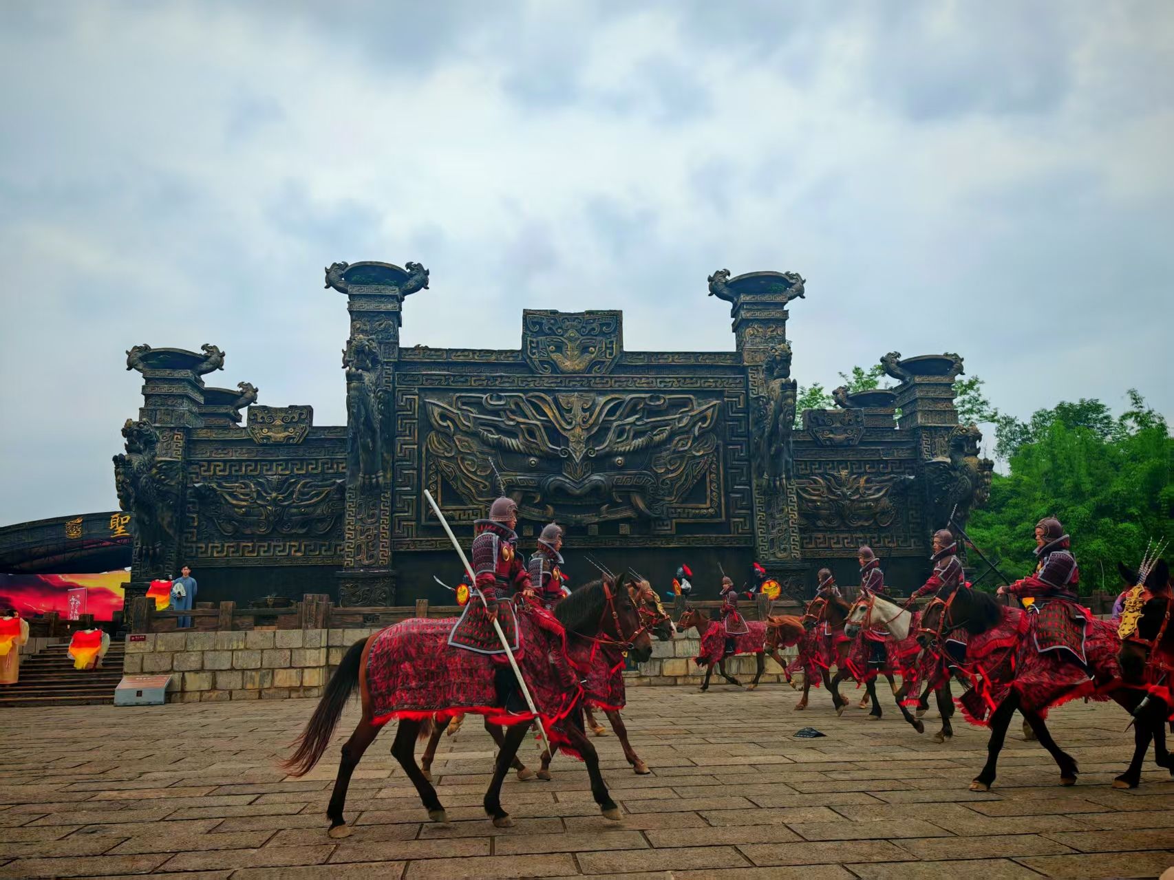 “各位看官,三國演義第四十四回到第五十回說道,曹操不費(fèi)吹灰之力擁有了荊襄水軍,號稱80萬大軍向長江推進(jìn)……”5月1日上午9時,隨著“說書人”一聲高喊,三國赤壁古戰(zhàn)場城門緩緩打開,10名戰(zhàn)士策馬躍出,戰(zhàn)鼓響起,劉備、關(guān)羽、張飛等三國人物也陸續(xù)出場,現(xiàn)場掌聲不斷。沉浸式場景將數(shù)百名圍觀游客穿越回1800多年前的三國時空。