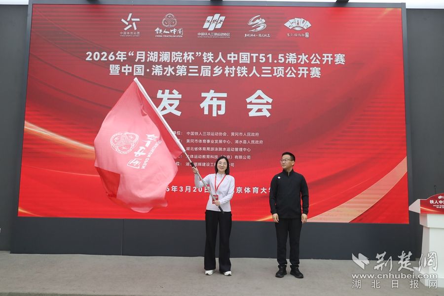 荊楚網(wǎng)(湖北日報網(wǎng))訊(通訊員 方俊 陳祎夏 陳杰明)3月20日上午,2026年“月湖瀾院杯”鐵人中國T51.5浠水公開賽暨中國·浠水第三屆鄉(xiāng)村鐵人三項公開賽在北京體育大學(xué)發(fā)布,中國鐵人三項運動協(xié)會秘書長秦建秋向浠水縣副縣長徐敏授賽旗,與會人員共同按亮啟動球,標(biāo)志著賽事全面啟動。