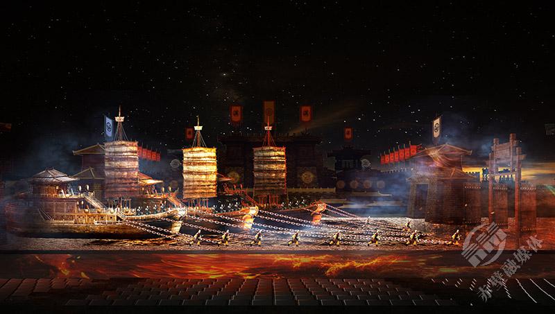 2000多年前,諸葛亮借的東風(fēng),是摧枯拉朽、克敵制勝的戰(zhàn)火雄風(fēng);2000多年后,三國(guó)赤壁古戰(zhàn)場(chǎng)借的東風(fēng),則是凝心聚氣、砥礪奮進(jìn)的時(shí)代之風(fēng)。演出將赤壁之戰(zhàn)這盤(pán)歷史大棋置于天地之間,以三國(guó)群雄為弈者,以演員和觀眾為棋子,利用光影特效與舞美裝置的變換,將戰(zhàn)役的多個(gè)關(guān)鍵情節(jié)進(jìn)行藝術(shù)化提煉與重構(gòu),運(yùn)用聲、光、電等現(xiàn)代舞美技術(shù),將歷史與現(xiàn)實(shí)、虛擬與真實(shí)融為一體,構(gòu)建起一個(gè)戰(zhàn)火紛飛、羽箭穿空的三國(guó)世界,讓赤壁之戰(zhàn)從史書(shū)中的符號(hào)躍升為可觸摸、可參與的精神場(chǎng)域。