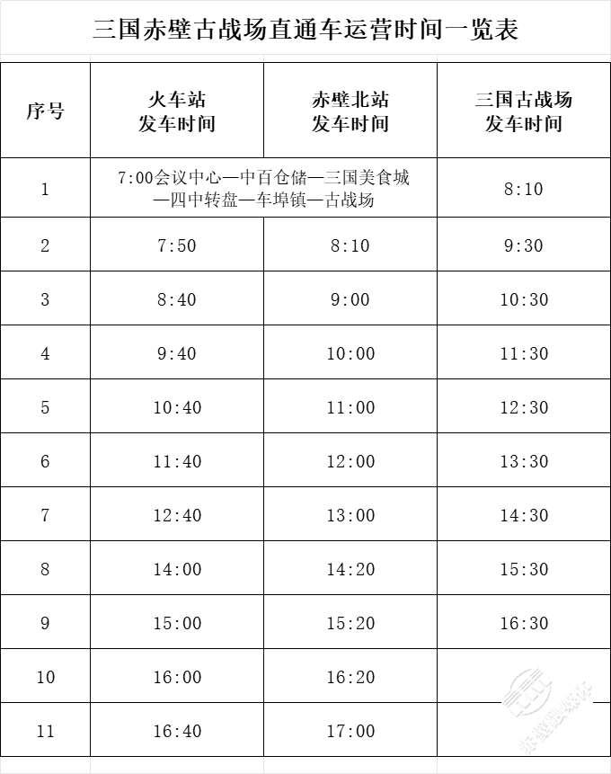 線路:抵站后可選擇旅游直通車或打車至三國赤壁古戰(zhàn)場(chǎng)
