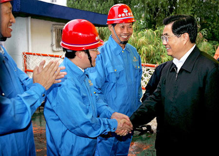 中共中央總書記胡錦濤慰問施工代表