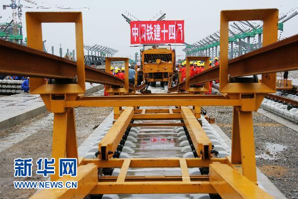 資料圖片:7月17日,中國鐵建十四局集團(tuán)京滬高鐵鋪軌工班的工人們正在鋪設(shè)通道,為正式鋪軌進(jìn)行準(zhǔn)備。京滬高鐵先導(dǎo)試驗段北段將于7月19日開始率先從徐州向蚌埠鋪軌,南段將于8月中旬從南京向蚌埠鋪軌,10月底將完成試驗段鋪軌。京滬高速鐵路全長1318公里,全線縱貫京津滬三大直轄市和河北、山東、安徽、江蘇四省,是我國目前最長的客運(yùn)專線之一。新華社發(fā)(劉文攝)