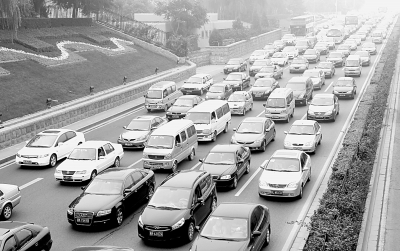 10月9日上午10點(diǎn),北京西二環(huán)依然車(chē)速緩慢,擁堵在北京已成常態(tài)。本報(bào)記者趙洪波攝