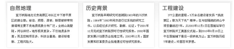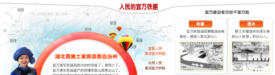 宜萬鐵路因穿越喀斯特地貌地區(qū),被譽(yù)為我國鐵路史上施工難度最大的山區(qū)鐵路工程。它集“西南山區(qū)鐵路艱險之大成”,專家們稱之為“筑路禁區(qū)”。修建難,最難在隧道。宜萬鐵路的159座隧道中有70%位于石灰?guī)r地區(qū)。在中國鐵路建設(shè)史上,因為宜萬鐵路,第一次為鐵路隧道按風(fēng)險分為輕、中、高3個等級。