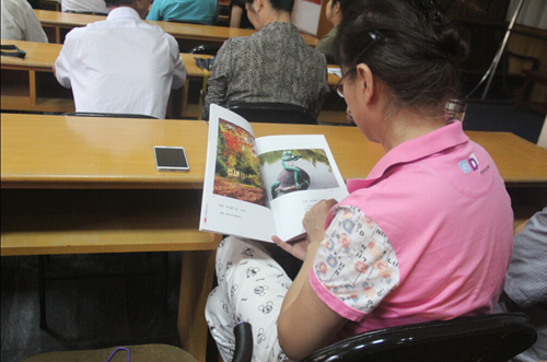 8月2日下午,在經(jīng)過半天休整之后,方老師開始為團(tuán)員們講課!拔覀兝夏耆藨(yīng)該有自己的興趣和追求,要學(xué)會自己找樂!薄艾F(xiàn)在小孩都是老年人在帶,我們學(xué)會了攝影就可以教孩子,對他們將來也有好處。”方老師的一席話,頓時就讓許多團(tuán)員萌生了學(xué)攝影的想法。接著,他向團(tuán)員們展示了自己拍攝的眾多精彩照片,并拿出一本攝影圖集供大家傳閱。“這本圖集里,都是我在老年大學(xué)教書時,學(xué)員們拍的照片。最大的學(xué)員都80多歲了,但是照片拍的特別好。相信大家通過學(xué)習(xí),也可以拍的如此精彩!狈嚼蠋煹脑,給了在座的老人極大的信心,大家也學(xué)的更加認(rèn)真。
