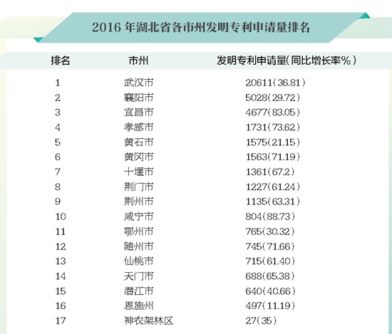 2016年湖北省各市州發(fā)明專利申請(qǐng)量排名