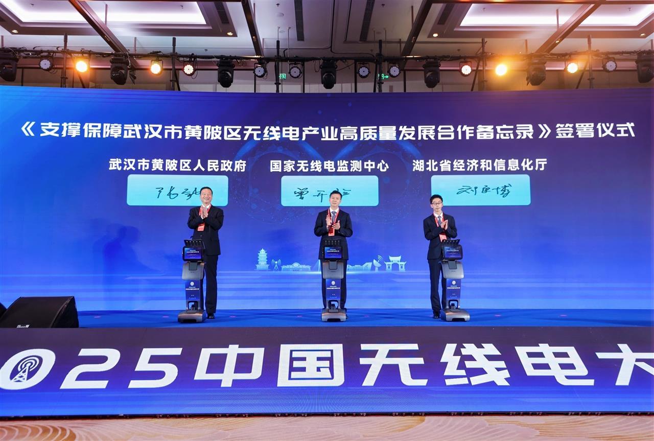 大會現(xiàn)場,國家無線電監(jiān)測中心、湖北省經(jīng)濟和信息化廳與武漢市黃陂區(qū)人民政府共同簽署合作備忘錄,明確將在頻譜資源開發(fā)、監(jiān)管能力提升、低空無人機協(xié)同管理等方面深化合作,支撐保障黃陂區(qū)創(chuàng)建無線電頻譜資源開發(fā)利用及產(chǎn)業(yè)高地。