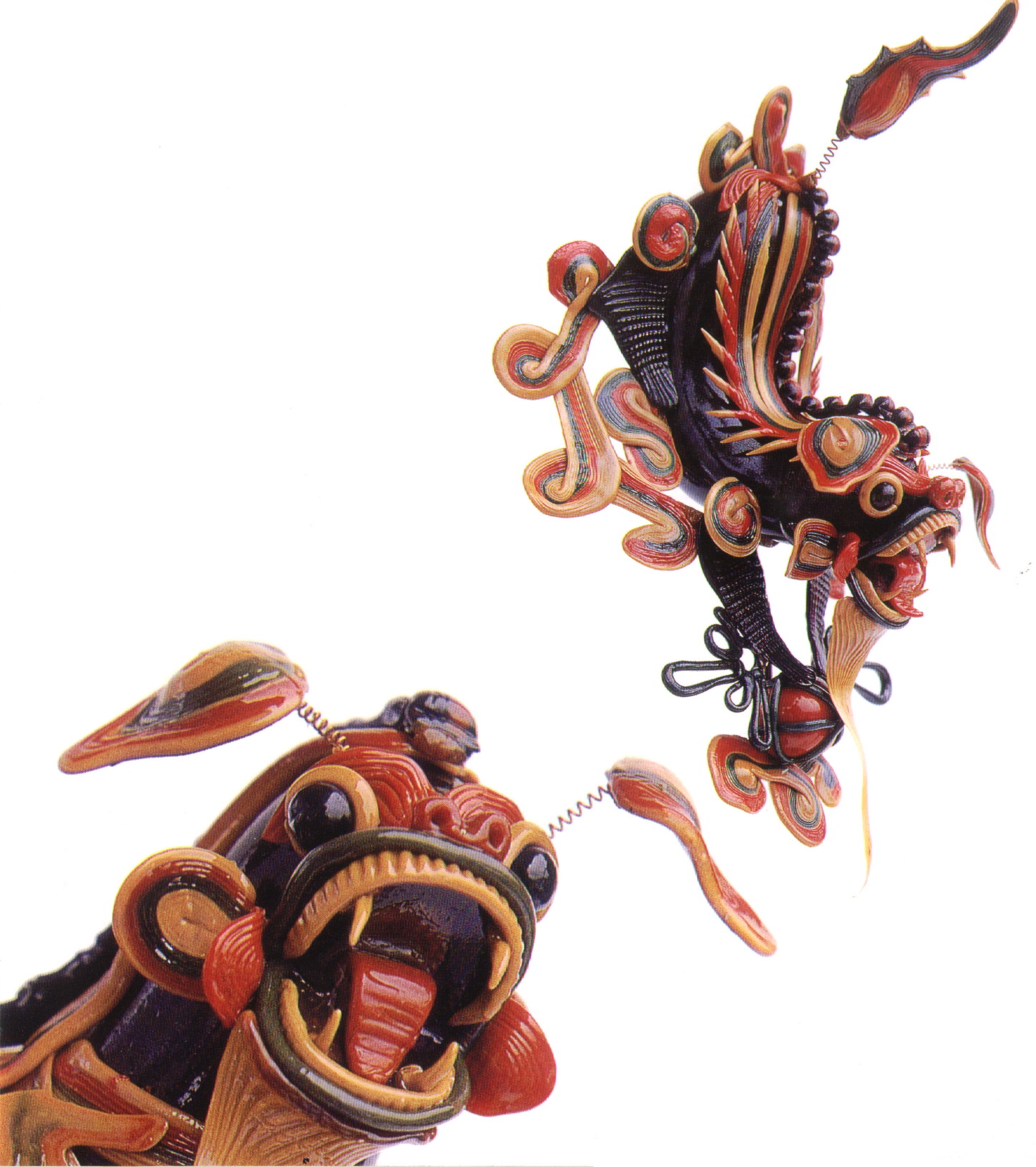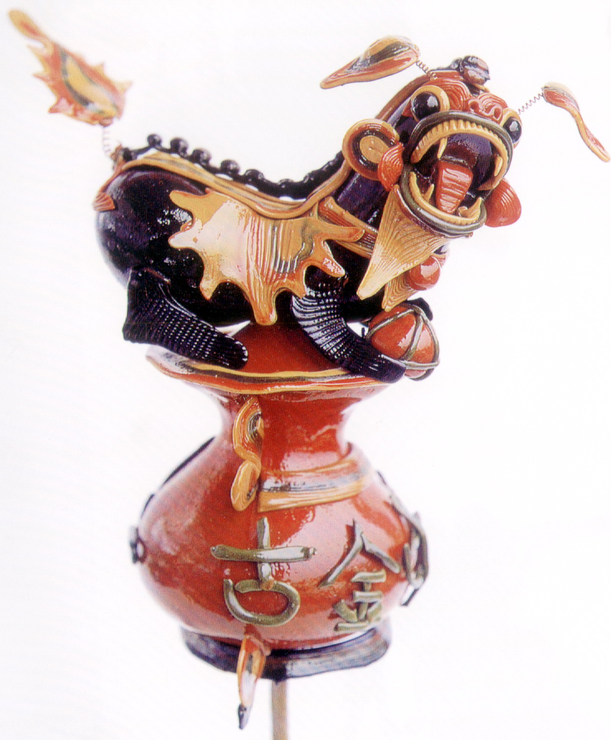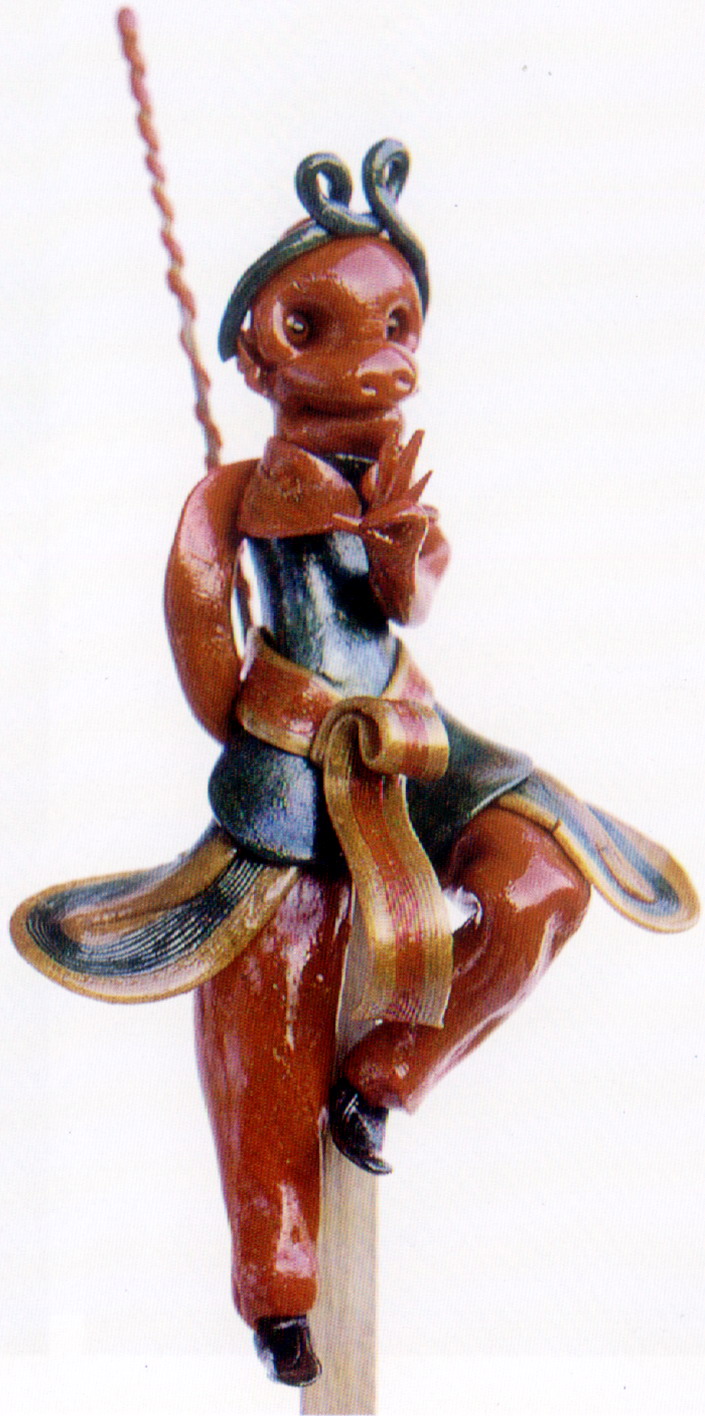 糖塑,俗稱吹糖,在湖北遍及全省,尤以天門最為突出。糖塑之所以贏得人們的喜愛,是因為它獨具特色:1、原料可塑性強:麥芽糖是糖塑的主要原料,加熱后變軟,比面塑更具可塑性,既可吹成薄而亮的各類造型,又可拉成粗細不同的糖絲。捏成不同形狀的配件,易粘且牢固;2、造型神形兼?zhèn)洌禾撬艿募妓囍饕Ψ蛟凇按怠鄙希粔K糖坯在藝人手中,邊吹邊捏,再通過搓、壓、挑、剪等手段,加上輔助的小鐵絲,少則幾分鐘,多則半小時,一件作品就完成了;3、色彩和諧醒目:麥芽糖加溫變軟加入紅、綠、黃、黑四種色素,根據(jù)需要又可調和成數(shù)十種復色,色彩響亮和諧;4、肌理變化豐富是糖塑獨具的特點:在糖塑中,附件變化萬千的肌理又與主體吹成光滑的表面形成鮮明的對比,顯得更加豐富耐看;5、“活”的部件是糖塑的又一特點:有的部件裝上自制的鋼絲彈簧,一經(jīng)拿在手中,部件都“活”起來了,更具生氣。